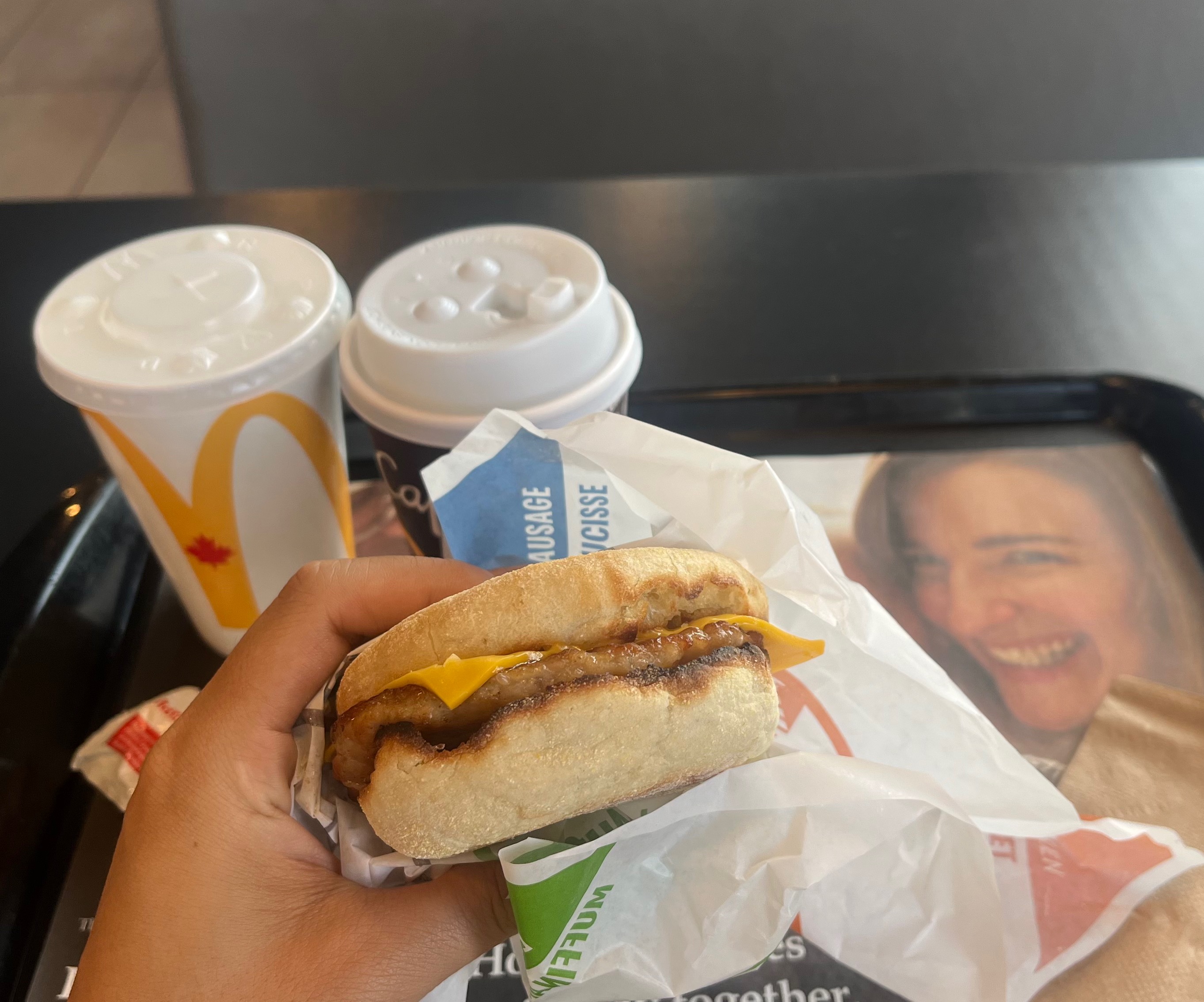 1달러짜리 Iced coffee 먹겠다고 와놓곤 다른 거 시키기 ㅎ 원래 다 그런 거 지모~ 맥머핀 빵이 한국보다 더 통통했다.