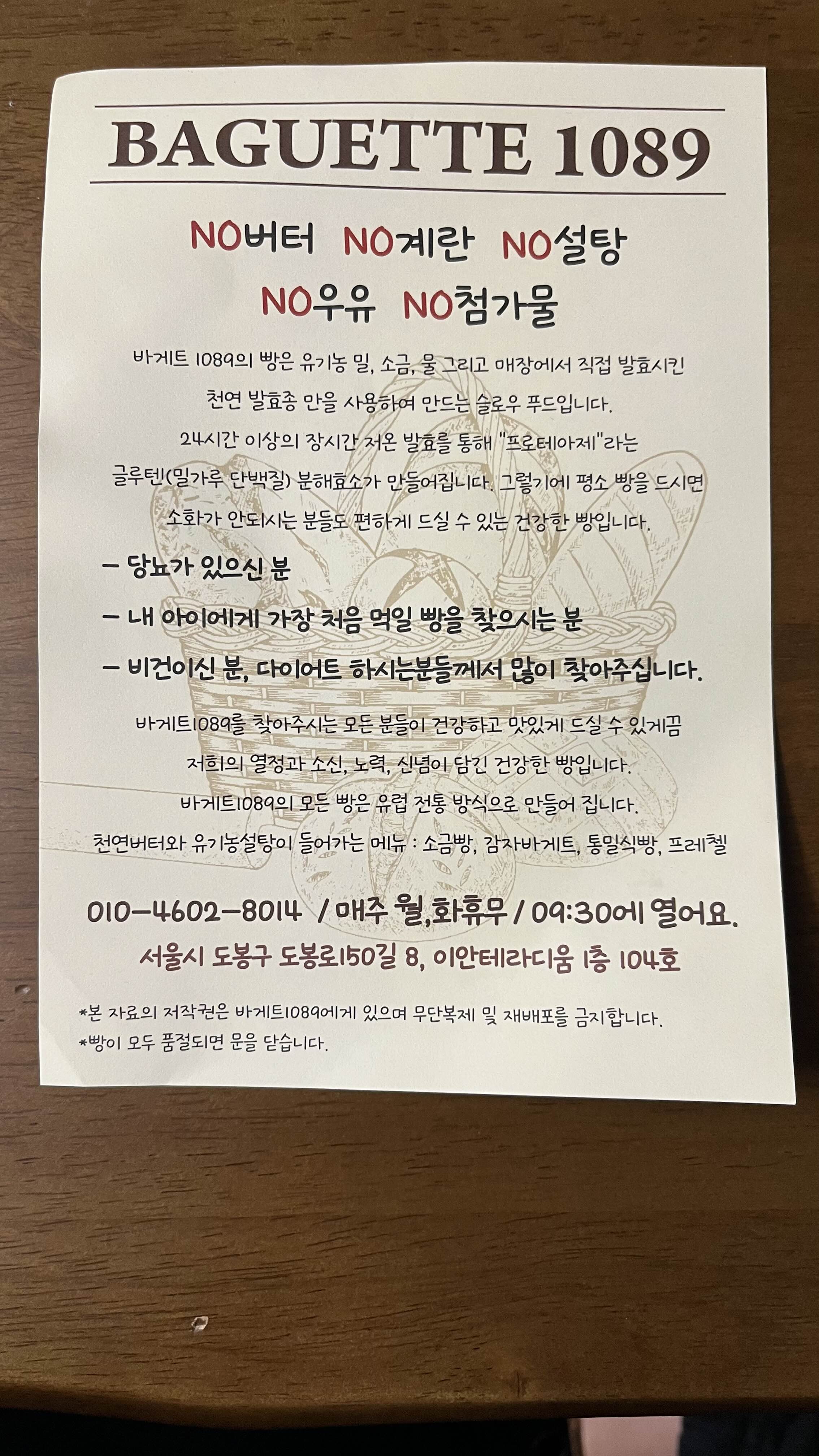 서울 도봉구 도봉로150길 8 이안테라리움 1층 바게트1089